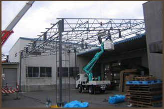 新テント倉庫の良さは、コストパフォーマンスに優れ、しかも工期が短いことです。ちなみに約40坪のテントで工事日数4日で出来てしまいます。